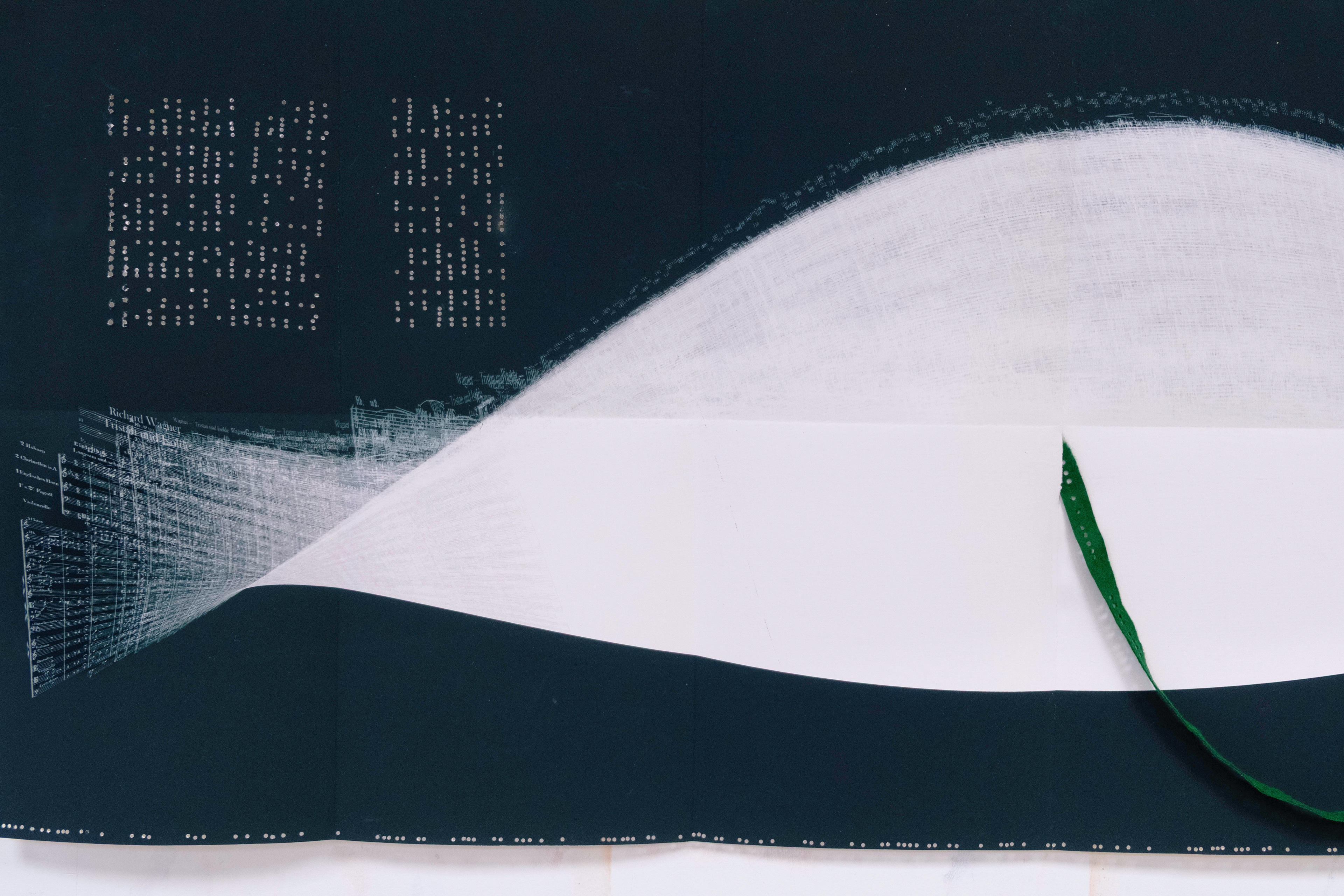 Giclee print, piano nameboard felt, bulldog clips