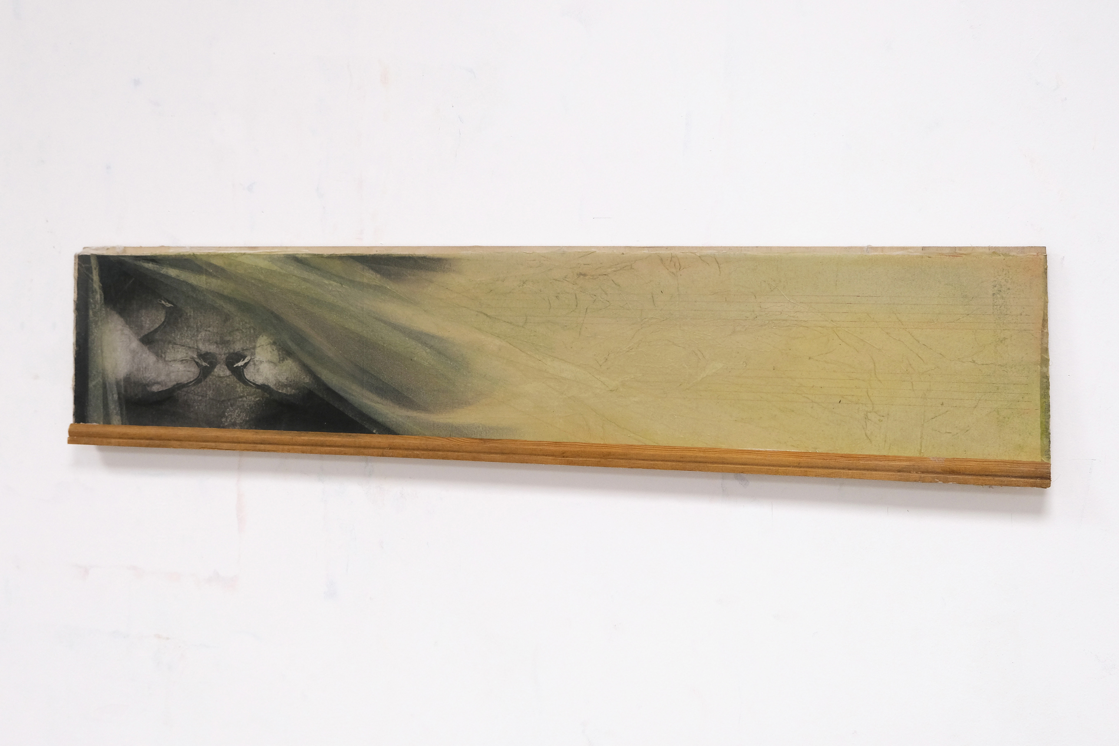 Oil, Maruishi paper, graphite, print, canvas, floorboard, wood offcuts